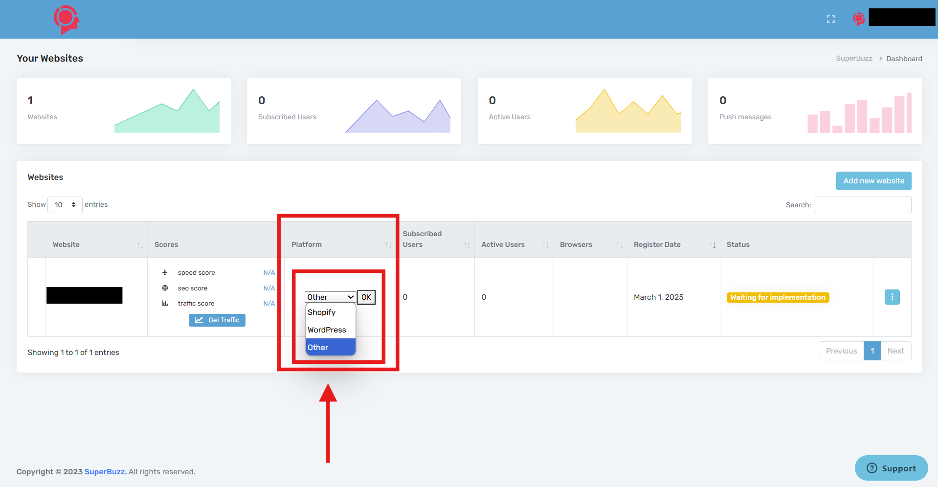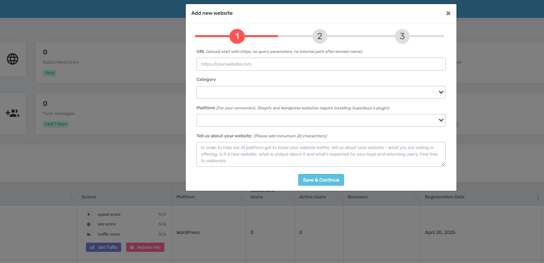 Step 1: Add Your Website in the SuperBuzz Dashboard