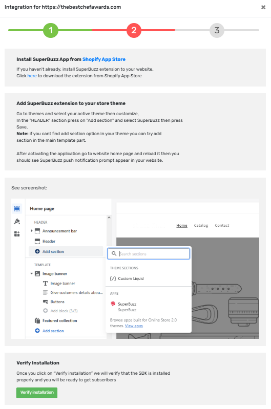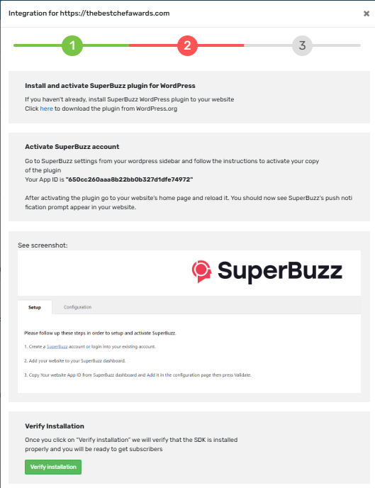 - Go back to the SuperBuzz dashboard and click the "Verify Installation" button.