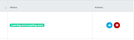 - New status in the dashboard: “Learning and acquiring users” confirms everything is working.
