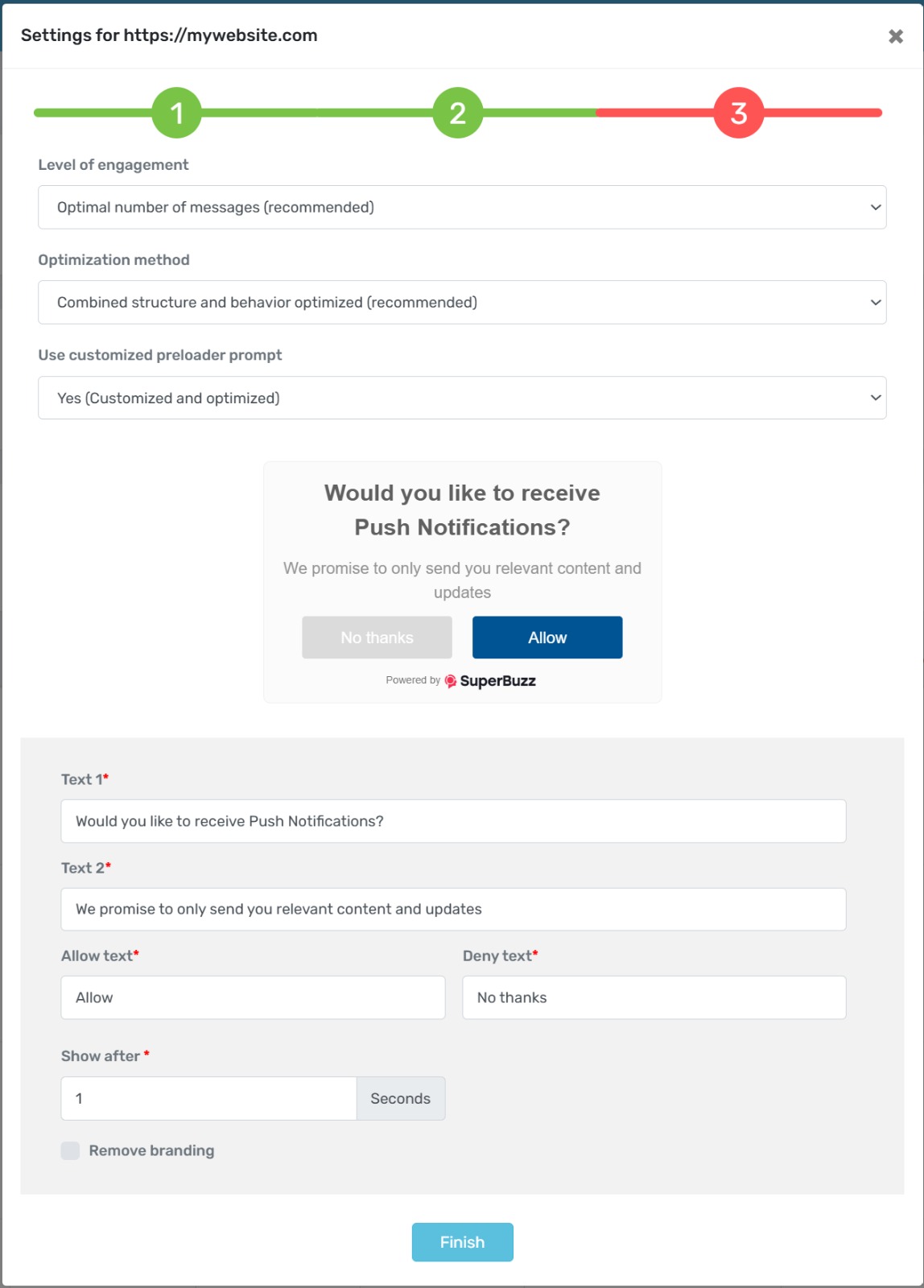 You’re now live with SuperBuzz! Visitors will begin receiving push notifications once they opt in.